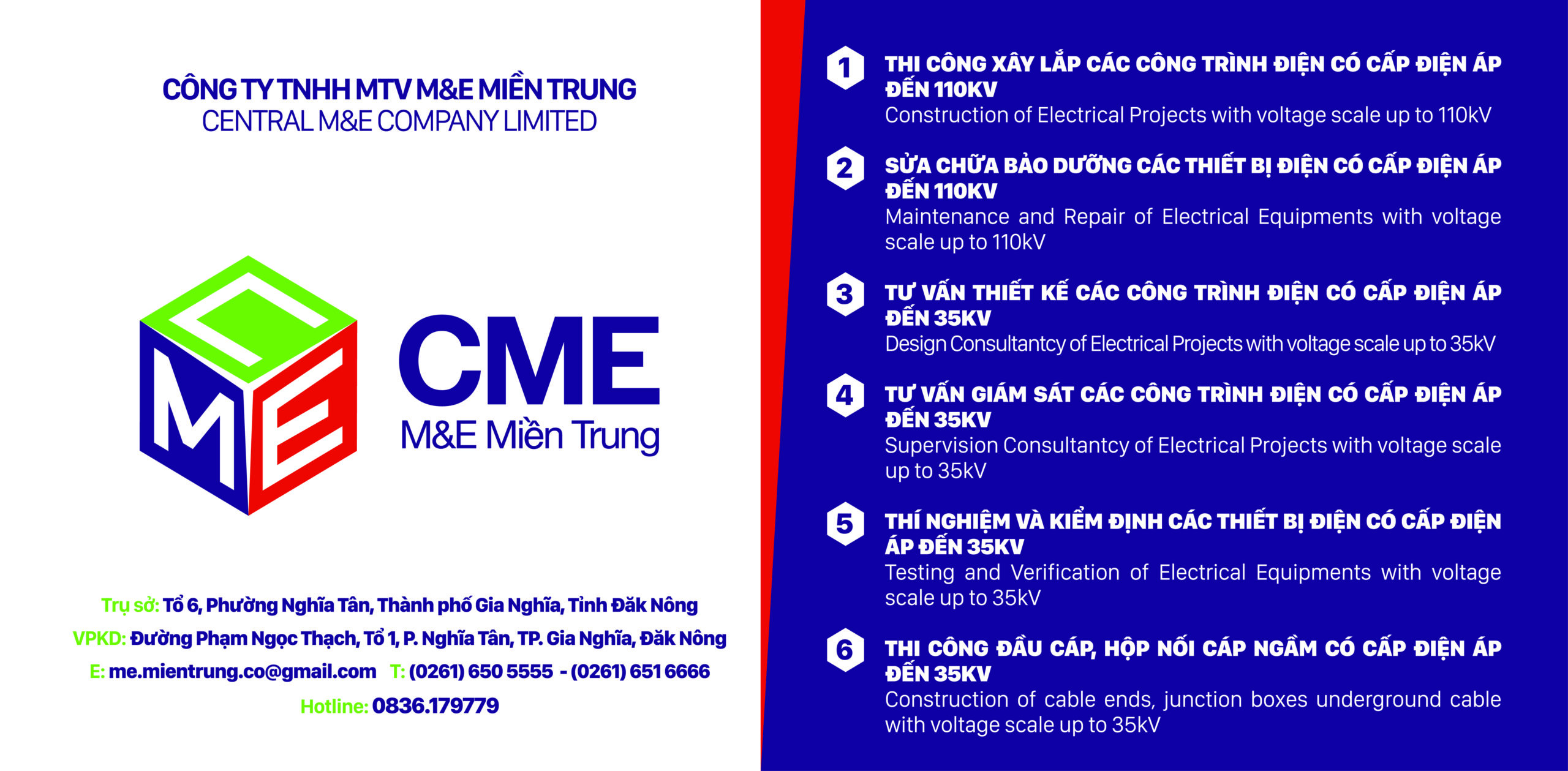 M&E Mien Trung Company Limited is a leading unit operating in the field of: